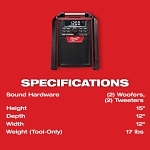 Milwaukee® M18™ Jobsite Radio/Charger, 10 Channels, LCD Display, Premium Speaker, 18 V DC, Li-Ion Battery, 1.5/2/3/4 Ah Battery, Metal Housing Material, 12 in L x 12 in W x 15 in H Dimensions