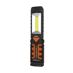 Work light is equipped with a 220 lumen COB LED work light, a 120 lumen flashlight and a rear, emergency red flasher LED. Provides hands-free lighting in three different ways: a hanging hook, a 200deg. pivoting stand and a magnetic base.