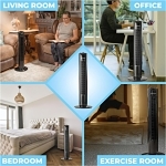 - Designed with a bladeless construction, this tower fan provides refreshing air without spinning blades, making it an ideal addition to homes with children and pets