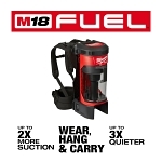 Milwaukee® Cordless Backpack Vacuum, 3-in-1, 1 gal Tank, 159 W Power, 18 V DC, 55 cfm Air Flow, 6 ft Hose, HEPA Filter, Drywall Dust, Concrete Dust and Wood/Metal Shavings Cleaning Path, 76 dB Sound Level, 10.24 in L x 8.43 in W x 21.97 in H Dimensions