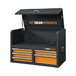 GearWrench® Drawer Tool Chest, Auto Return, 35.7 in Width, 17.8 in Depth, 23 in Height, (3) 14.7 in W x 15 in D x 3 in H, (1) 14.7 in W x 15 in D x 3 in H, (1) 14.7 in W x 15 in D x 6.1 in H Drawer, 5 Drawers, 20 ga Steel, Textured, Black/Molten Orange®