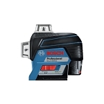 The Bosch GLL3-330CG 12V Max 360° Connected Green-Beam Three-Plane Leveling and Alignment-Line Laser provides an all-in-one level and alignment solution for one-person job setup. The leveling laser generates three green-beam laser chalk lines in 360° laser planes – one horizontal and two vertical. With Bluetooth® connectivity, users can control the setup of the laser from across the room with their smart phone and the free Bosch Leveling Remote App. The laser offers dual power technology, employed the included Bosch 12V Max Lithium-ion battery for extended runtime, or with four AA alkaline batteries. The laser has a working range of up to 200 Ft. diameter, and with pulse mode the range extends up to 330 Ft. (diameter) with the optional LR8 receiver. This laser features VisiMax™ Technology to drive maximum line visibility, CAL Guard for calibration assurance and robust over-molded construction to withstand rainy or dusty jobsite conditions.