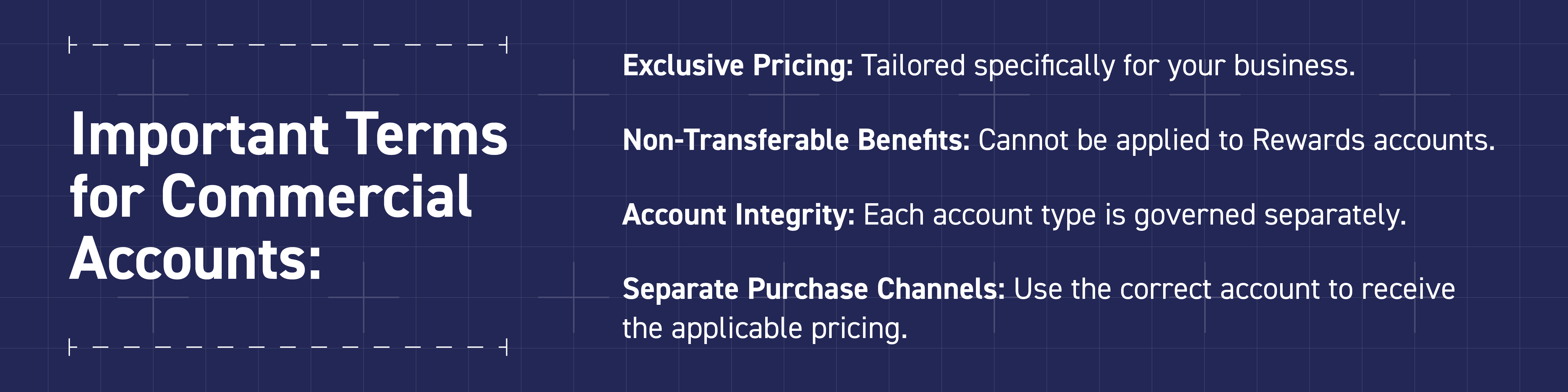 Unlock exclusive pricing, track your spending, and simplify procurement with a dedicated commercial account.