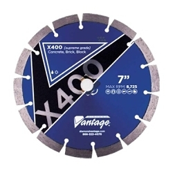 X400 supreme grade general purpose concrete diamond blade for reinforced concrete, cured concrete, brick and block. Use wet or dry. Keyhole slot segments. 5/8" and 7/8" arbor sizes